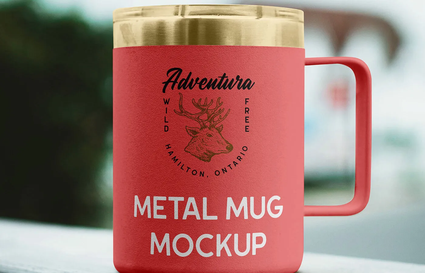 Display your branded drinkware with an outdoor theme using the Outdoor Metal Mug Mockup. This PSD file features a sturdy camp mug set in a natural environment, highlighting its adventure-ready design. You can easily add your logo or design using smart object layers to achieve a realistic engraved appearance with a genuine metallic texture and natural lighting.