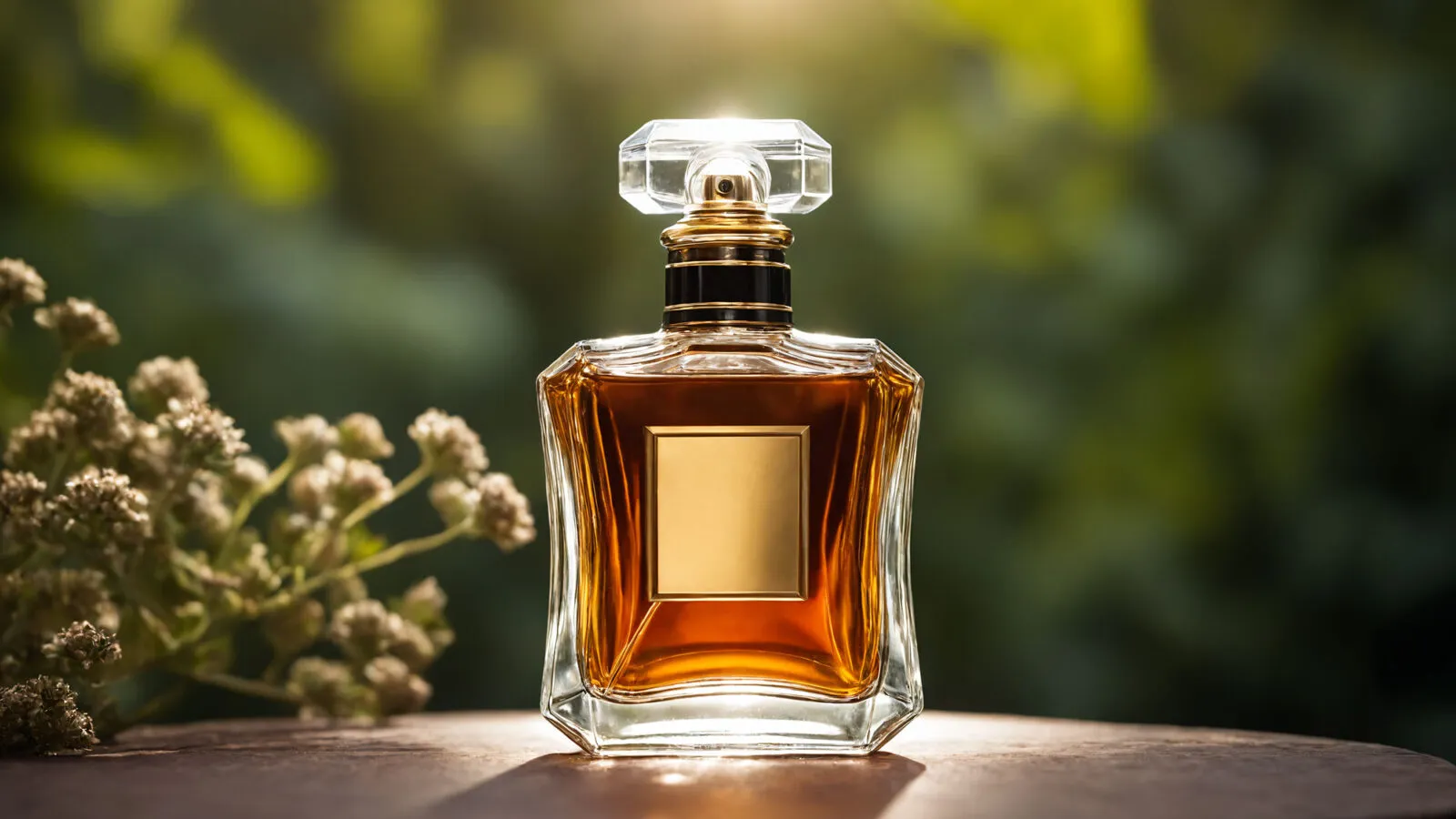 The Outdoor Perfume Bottle Mockup showcases a perfume bottle set against a beautiful natural backdrop. With vibrant greenery and warm sunlight, this mockup emphasizes the intricate details of the bottle, including its glass structure, label, and cap. The warm lighting enhances the amber hues of the fragrance, providing a lifelike representation of your product.