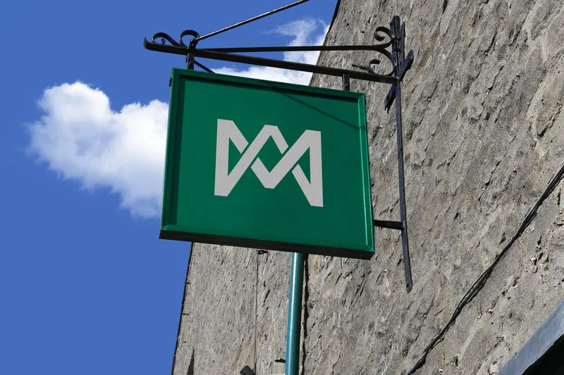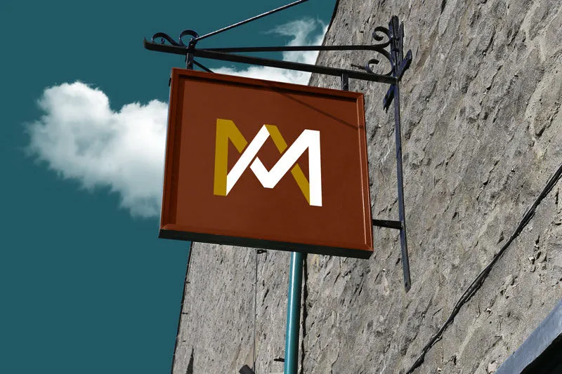 The Outdoor Wall-mounted Shop Sign Board Mockup is a great tool for showcasing your designs in a realistic outdoor setting. This mockup features a square-shaped sign mounted on a wall, providing a perfect canvas to display your logo or monogram in a way that captures attention.