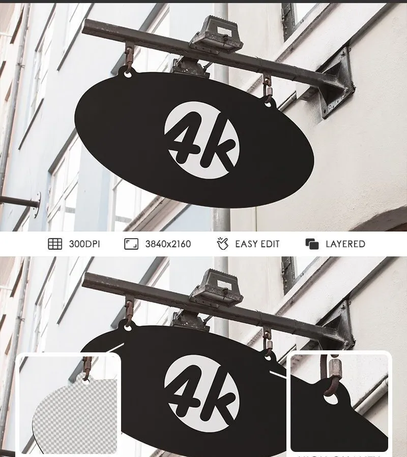 The Oval-Shaped Hanging Signboard Mockup offers a versatile solution for showcasing your logo designs across various settings such as bars, restaurants, clothing shops, offices, or libraries. This mockup is designed for easy customization, allowing you to seamlessly integrate your designs into the scene for a realistic presentation.