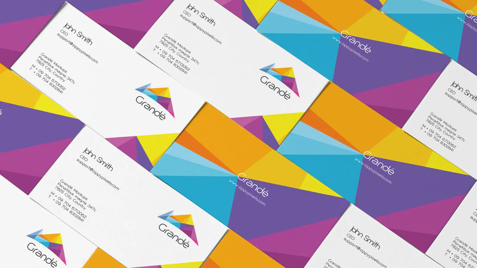 This free mockup is ideal for those who appreciate a meticulously crafted design. It features an overhead view of a grid of business cards arranged systematically. You can easily apply your graphics and patterns to these cards, showcasing your designs effectively.