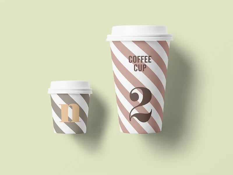 If you’re working with a client for designing a brand on a coffee cup, why don’t you consider this awesome mockup? It comes with two paper cups in different sizes on a solid-colored background with realistic shadows. you can simply place your logo, patterns, texts, and any graphic design to it and make yours in a flash.