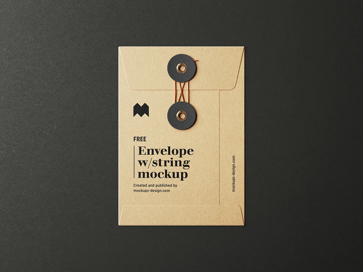 Today we have a fantastic with a cute elegant string that holds it together. In this mockup, a dark background and a modern simple beige paper envelope are visible. From the front and back view. That allows you to analyze everything properly. It’s also shot from 5 different angles, and that is the strong point. it can be perfect for any branding or stationery presentation.