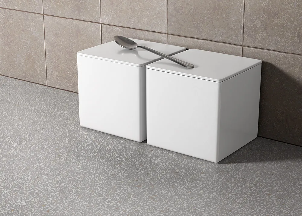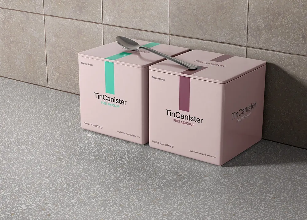 Choosing a minimal design from the routine components of the kitchen, like a tea canister, can attract anyone, and with a professional mockup like this one, you can have such a show. With a stylish scene of two square tin canisters in a realistic background, this will show an attractive promotion.