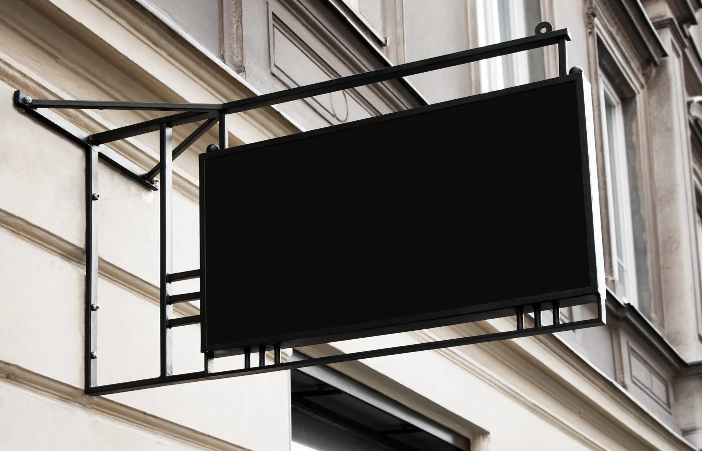 You can attract a lot of attention with a modern and catchy display sign of your shop, and this mockup shows a particular example. This hanging rectangle shows an ultra-realistic scene with an urban and original vibe.