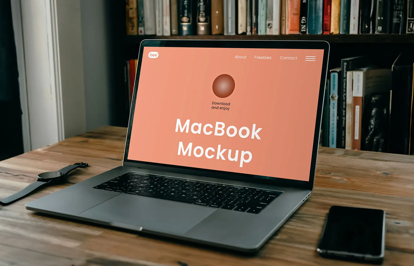 Positioned on a table alongside everyday objects, this mockup is ideal for displaying new software designs or other creative projects. It provides a professional backdrop that can help you create a unique and engaging design presentation.