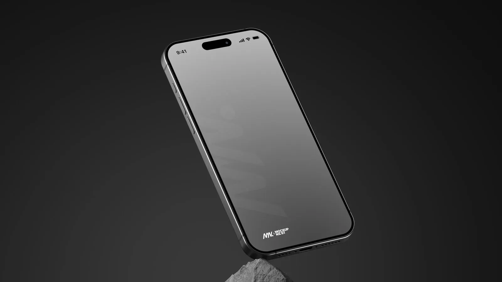 Perspective Sight of iPhone 15 Pro Mockup on Rock