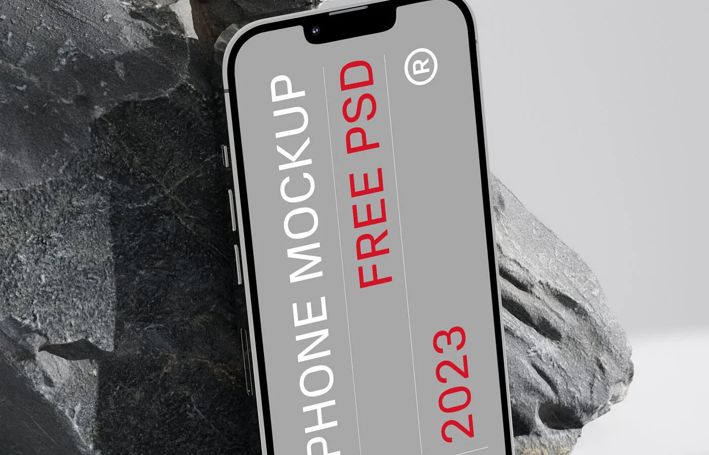 Perspective Sight of iPhone Mockup Based on Rock