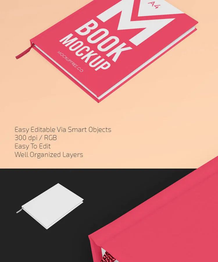 The PSD file displays a hardcover in perspective view, lying down as it faces upwards, and there’s a bookmark with its fabric tail visible from the bottom edge of the book. Being fully customizable, this awesome piece of graphics gives you full control over the cover design, bookmark color, and background. Brilliant, right?