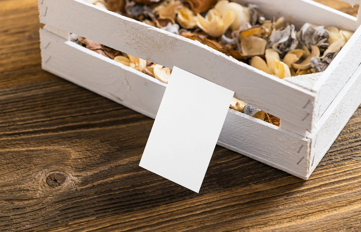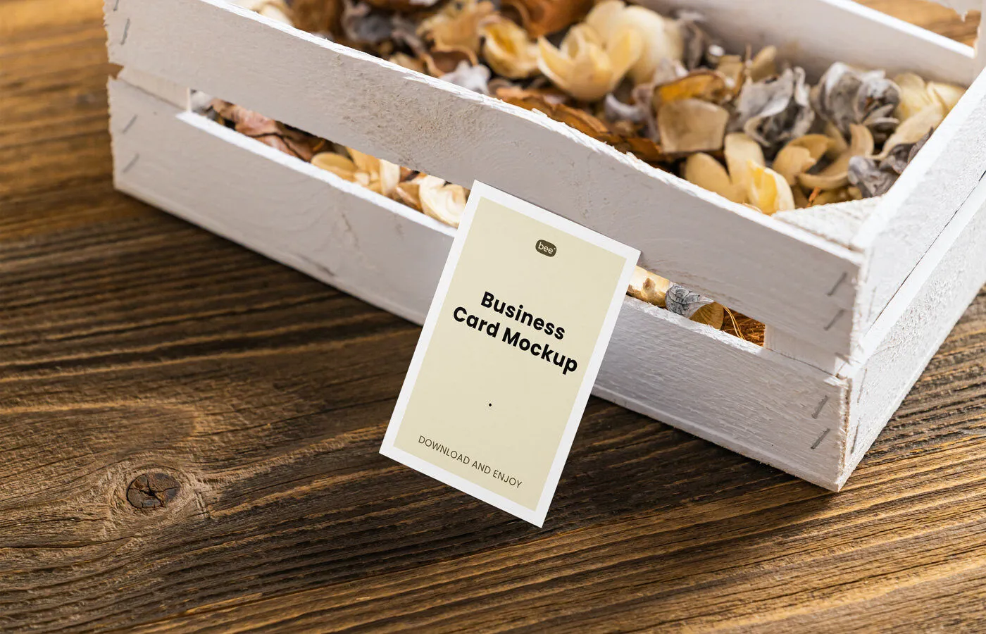 Finding a way to display business cards is often tricky and challenges even the most creative designers. But what if you download this and show your creativity? In this scene, the business card rests on a wooden basket and displays good natural details.