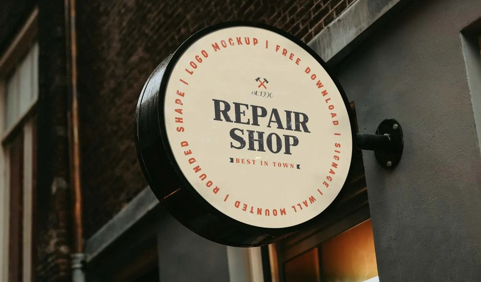 If you were looking for a shop to showcase your design, this might be what you need. This product is the perspective view of a vintage round shop signage mockup. The background and the design elements are very realistic and will bring your imagination to life perfectly.