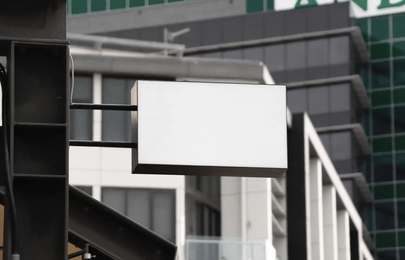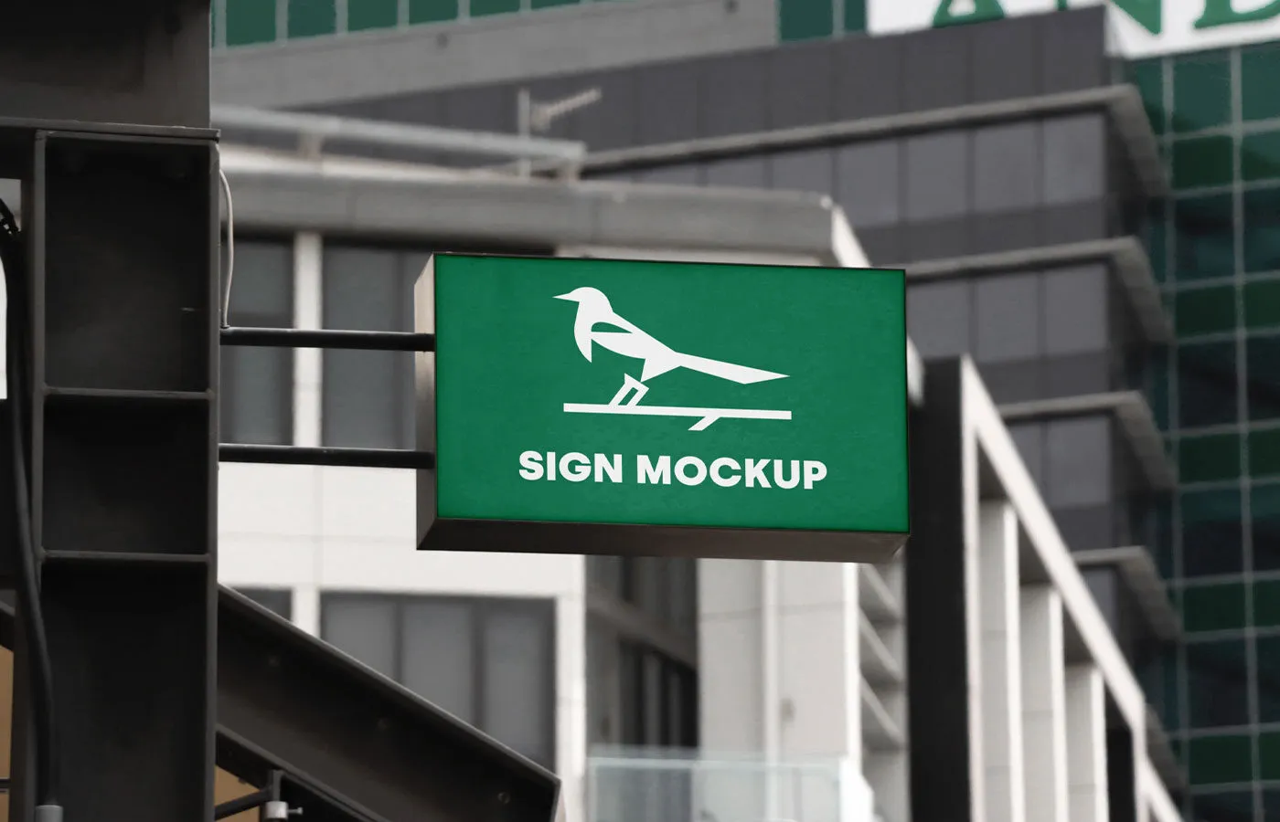 Perspective View of a Wall Mounted Shop Sign Mockup