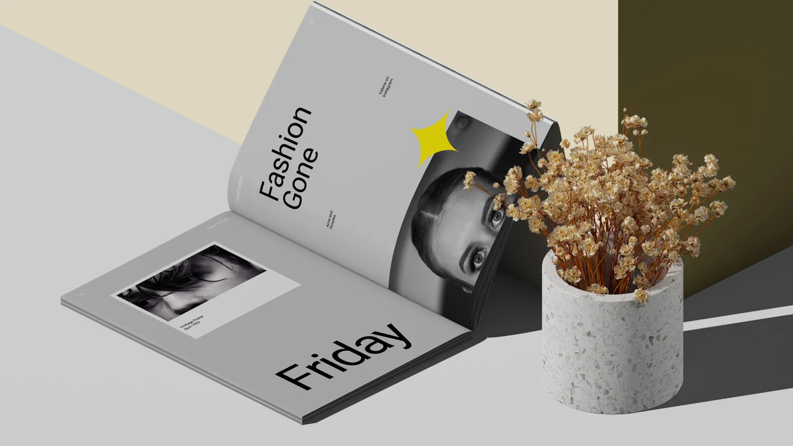 The Perspective View of A4 Open Magazine Against Wall offers a realistic and visually appealing way to showcase your content. This setup, with the magazine open against a wall, creates a cozy and engaging atmosphere that effectively highlights your work.