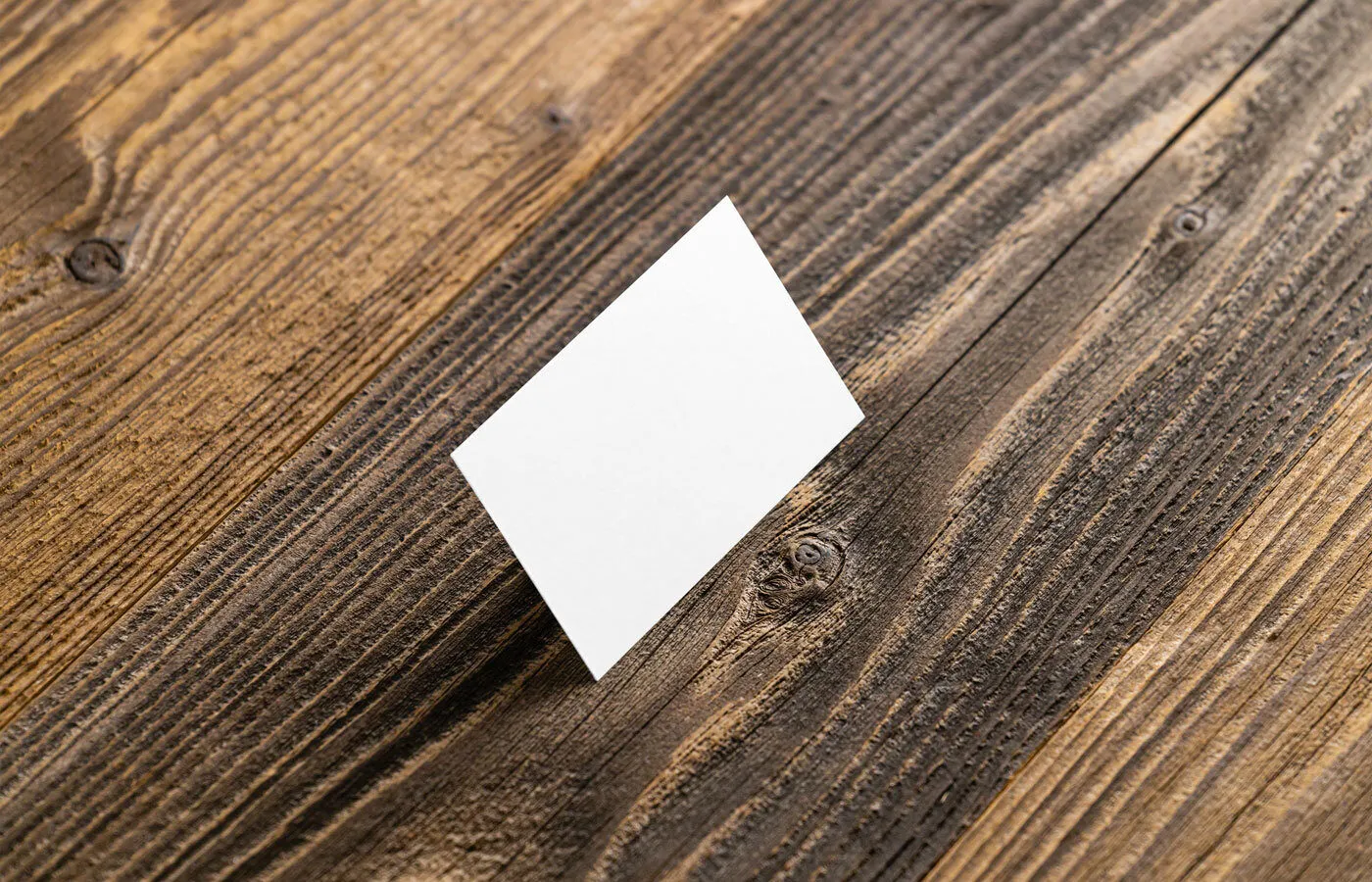 Perspective View of Business Card Mockup in Wood Background