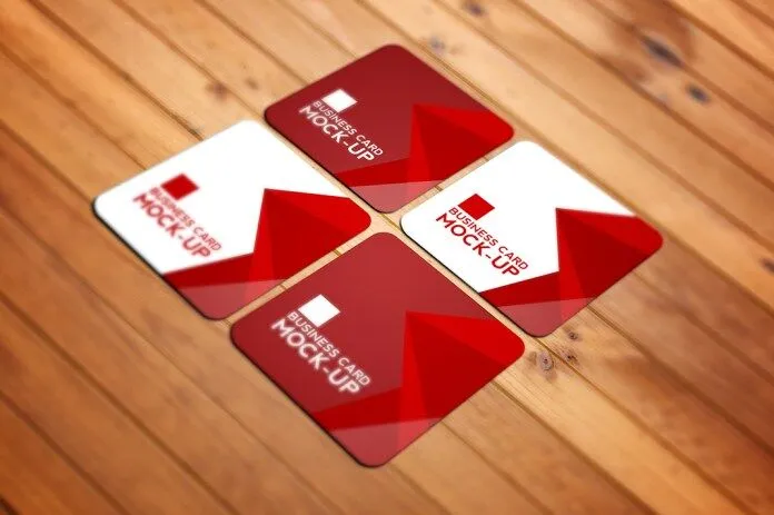 Instead of the typical rectangular shape cards, today’s freebie invited square ones to showcase your business card designs. A perspective image shows four placed on a striped wooden texture, with perfect lighting. All of the four cards’ surfaces are apparent with high quality.