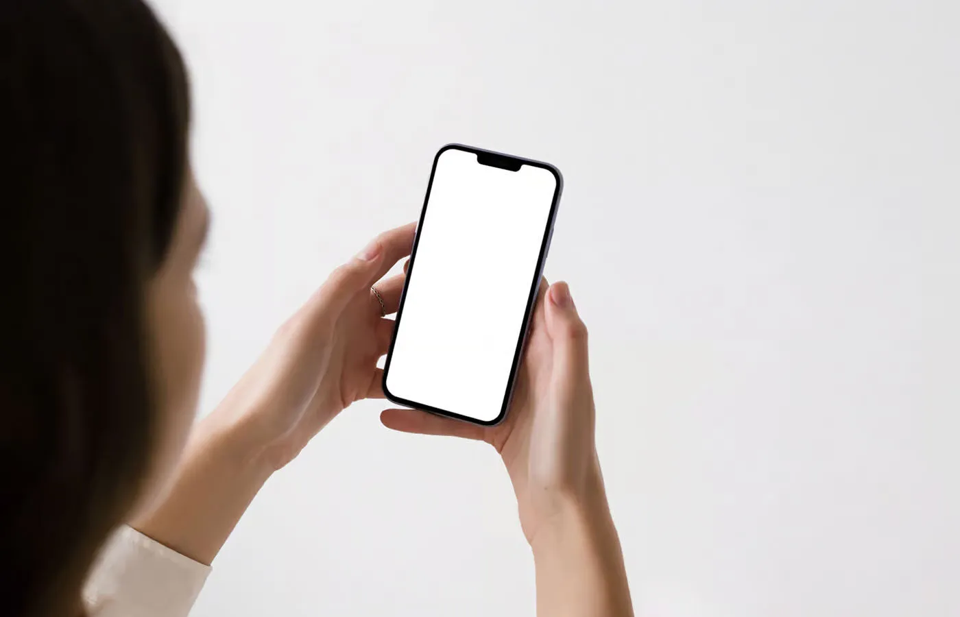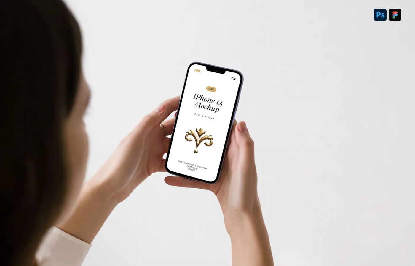 Perspective View of iPhone Pro Mockup in Woman Hands