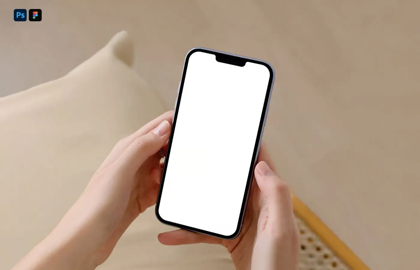This iPhone Pro mockup offers a realistic touch that helps you create a tangible experience for your audience. The perspective view in hands adds an engaging element to your presentation, making it ideal for showcasing your new design.