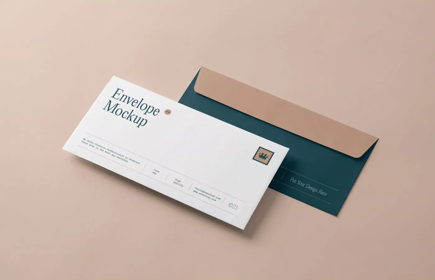 Showcase your creative design with the Perspective View of Luxury Envelope Mockup, featuring a minimal and photorealistic layout. This mockup displays both sides of the envelope in a perspective view, making it ideal for creating an elegant advertisement.