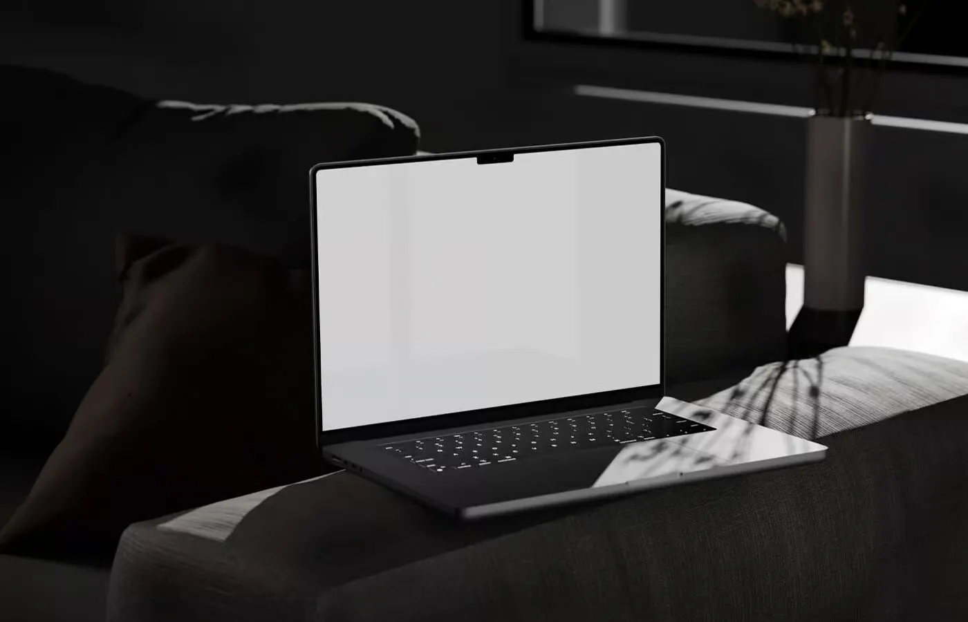 Perspective View of MacBook Pro Mockup on Settee