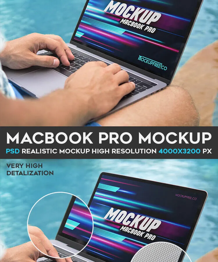 If you want to show a project presentation as realistic as possible, you need this practical to display everything you want. The scene showcases a close-up view of a man’s hands working on a laptop computer. This MacBook mockup is possible to show off your website project and application. You can import your designs and artwork into smart objects layers.