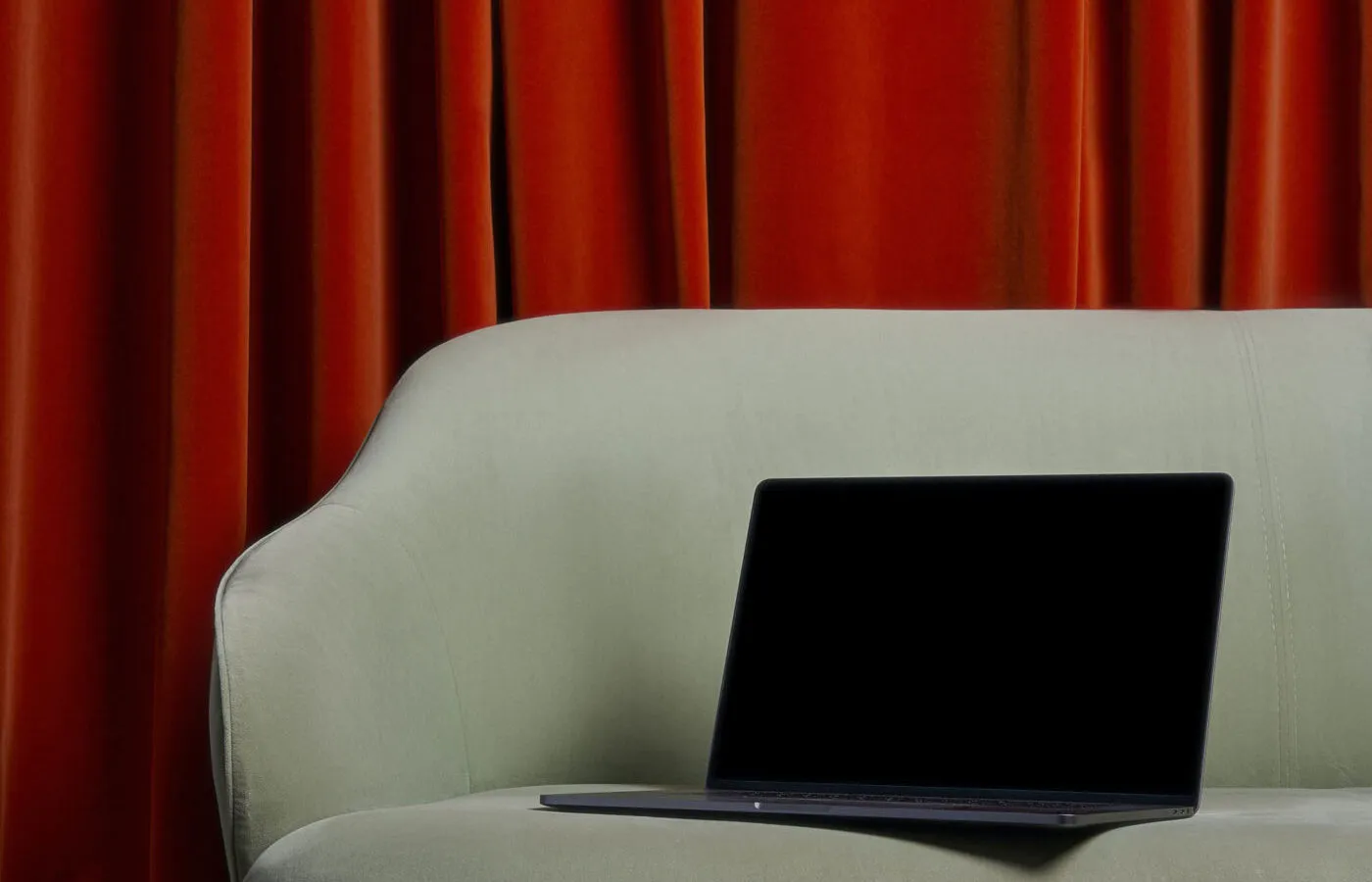 Perspective View of Modern MacBook Pro Mockup on Sofa