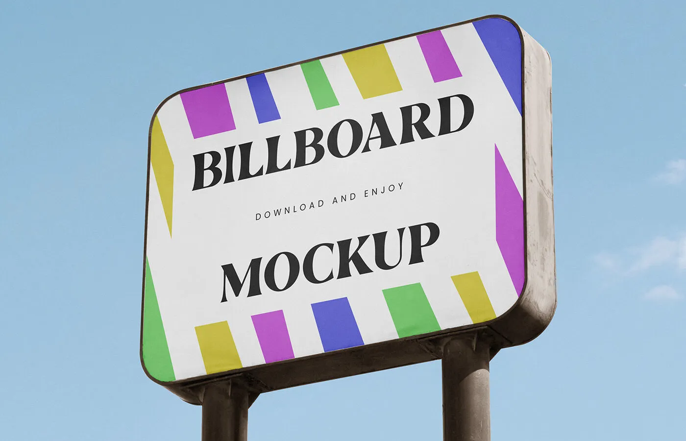 The Perspective View of Rectangle Billboard Mockup offers a realistic way to showcase your brand or message. This mockup features a striking design with a sky background, providing a professional setting for your advertisement.