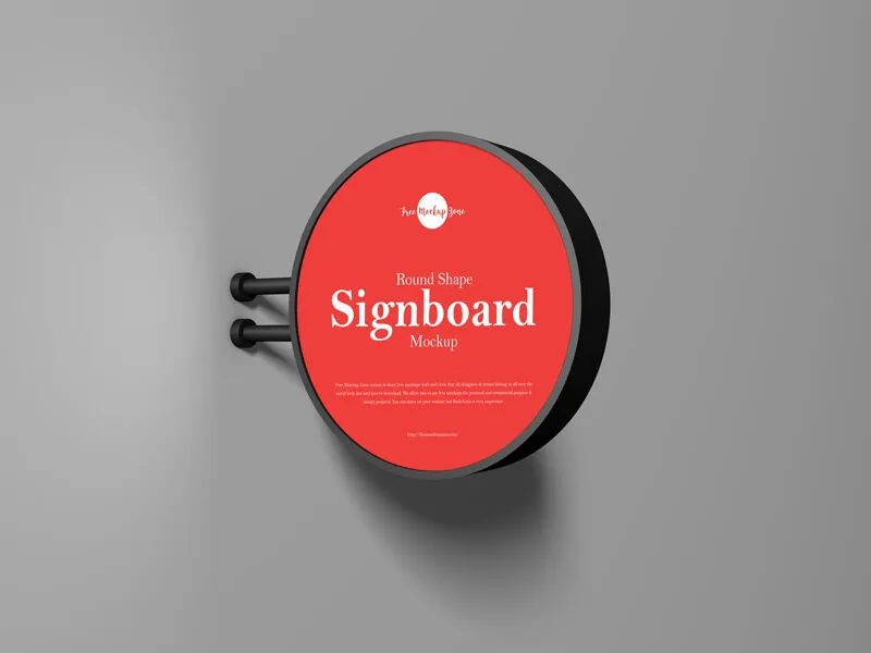 The Perspective View of Round Shape Signboard Mounted on Wall Mockup offers a unique way to display your designs. Featuring a round signboard mounted on a wall with two supports, this mockup provides a perspective view that enhances the presentation of your work. You can easily apply your latest designs to the sign’s surface for a realistic preview.