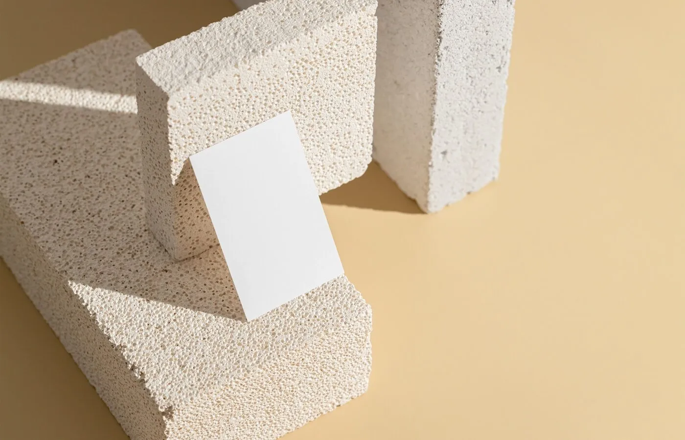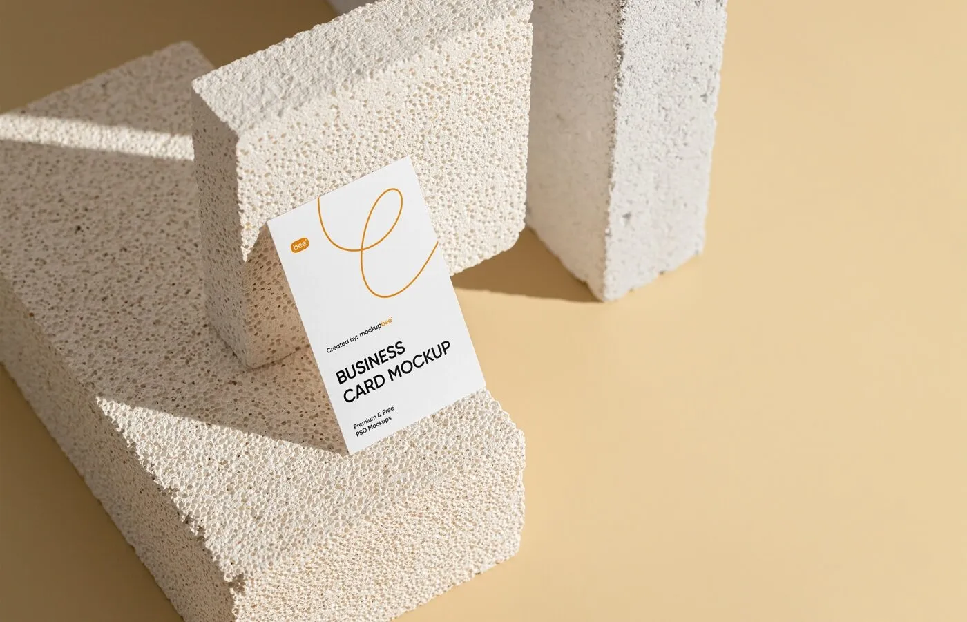 Perspective View of Vertical Business Card Mockup on Brick