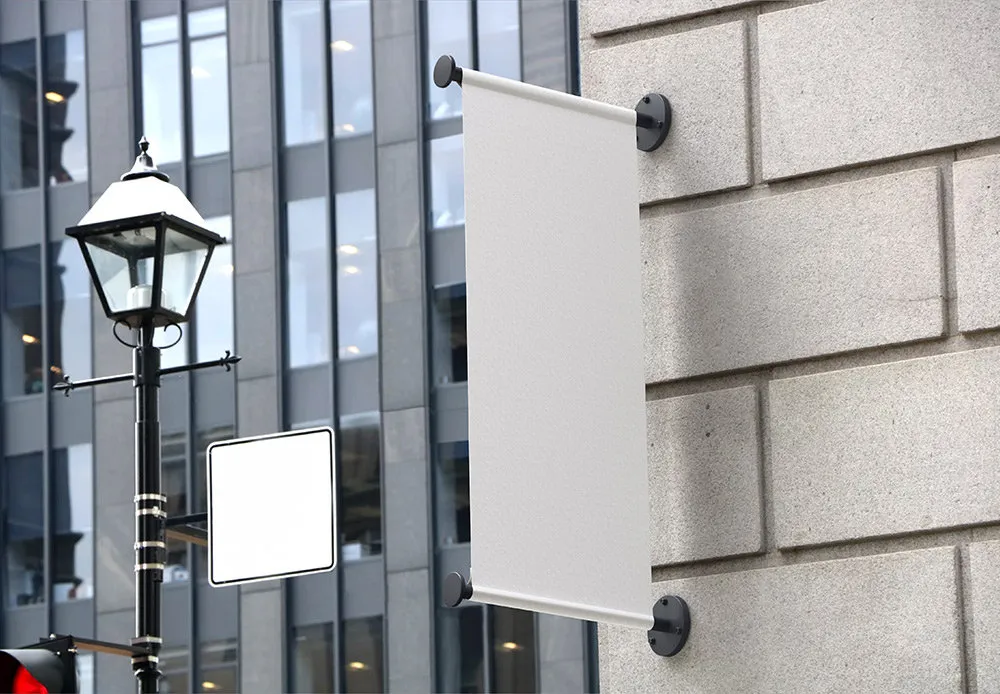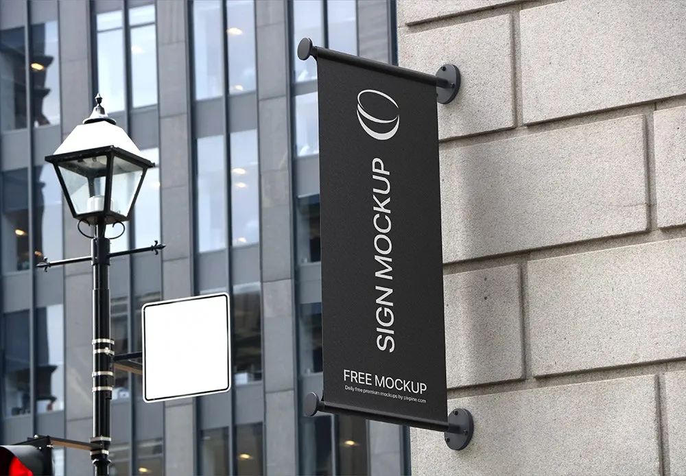 Showing the modern and chic design of the brand can make your name last in the minds and this mockup has presented a beautiful and realistic template. With a perspective view of a vertical outdoor sign with an urban background, this can be an attractive opportunity for your design.