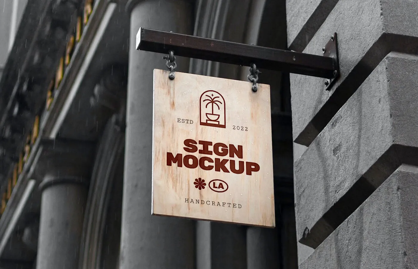 Perspective Views of Vintage Wood Sign Mockup