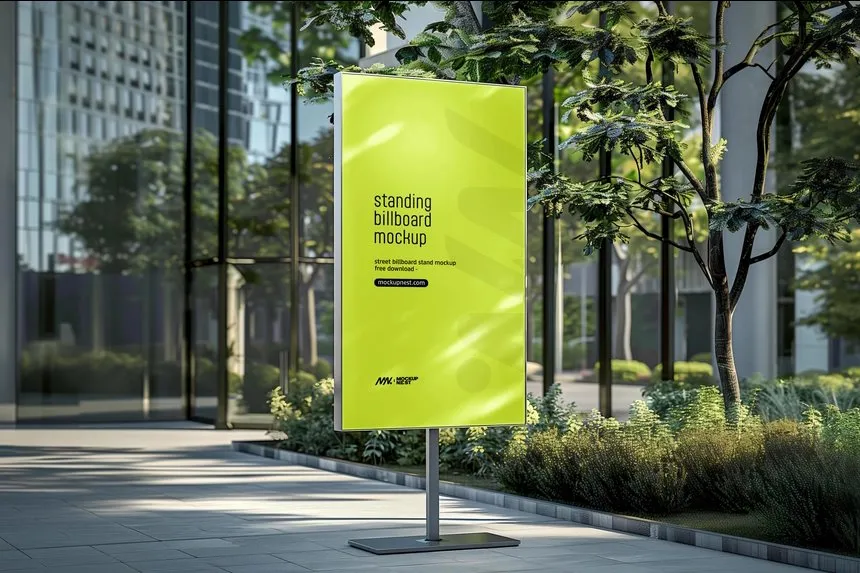 The mockup includes natural shadows that enhance the professional look of your street advertising. By adding your creative touch, you can elevate your promotional efforts. Explore our collection to find the perfect letterform to complement your design and make it stand out even more.