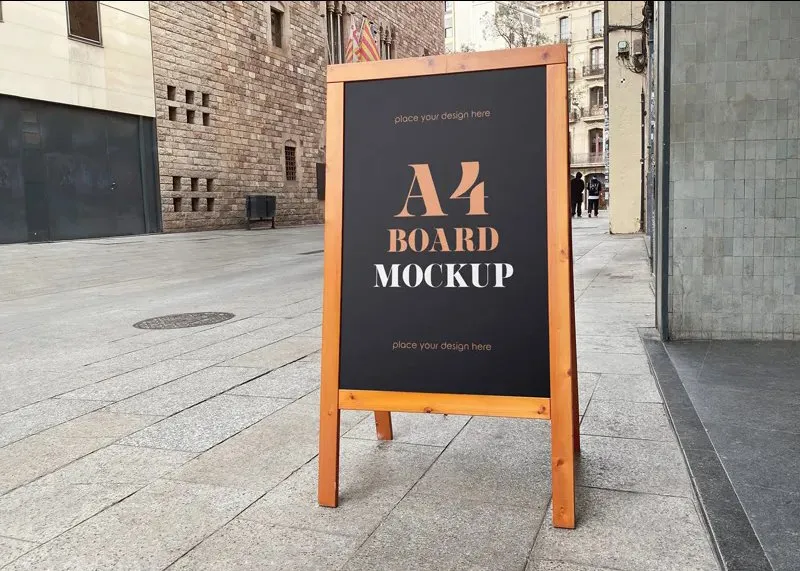 Are you working on a new promotion and need a unique layout? This free mockup can be a nice choice. With an urban and friendly vibe, this standing board mockup can introduce your name to your viewers well.