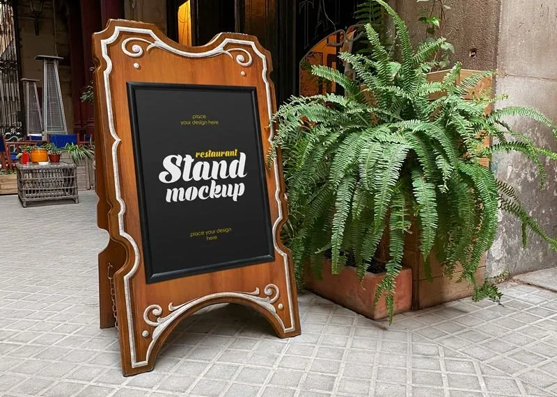 Capture a lot of people with a lifelike and ravishing design like this option and overjoy the result. This wooden restaurant stands mockup with its realistic backdrop, which can convey a friendly vibe to your viewers.