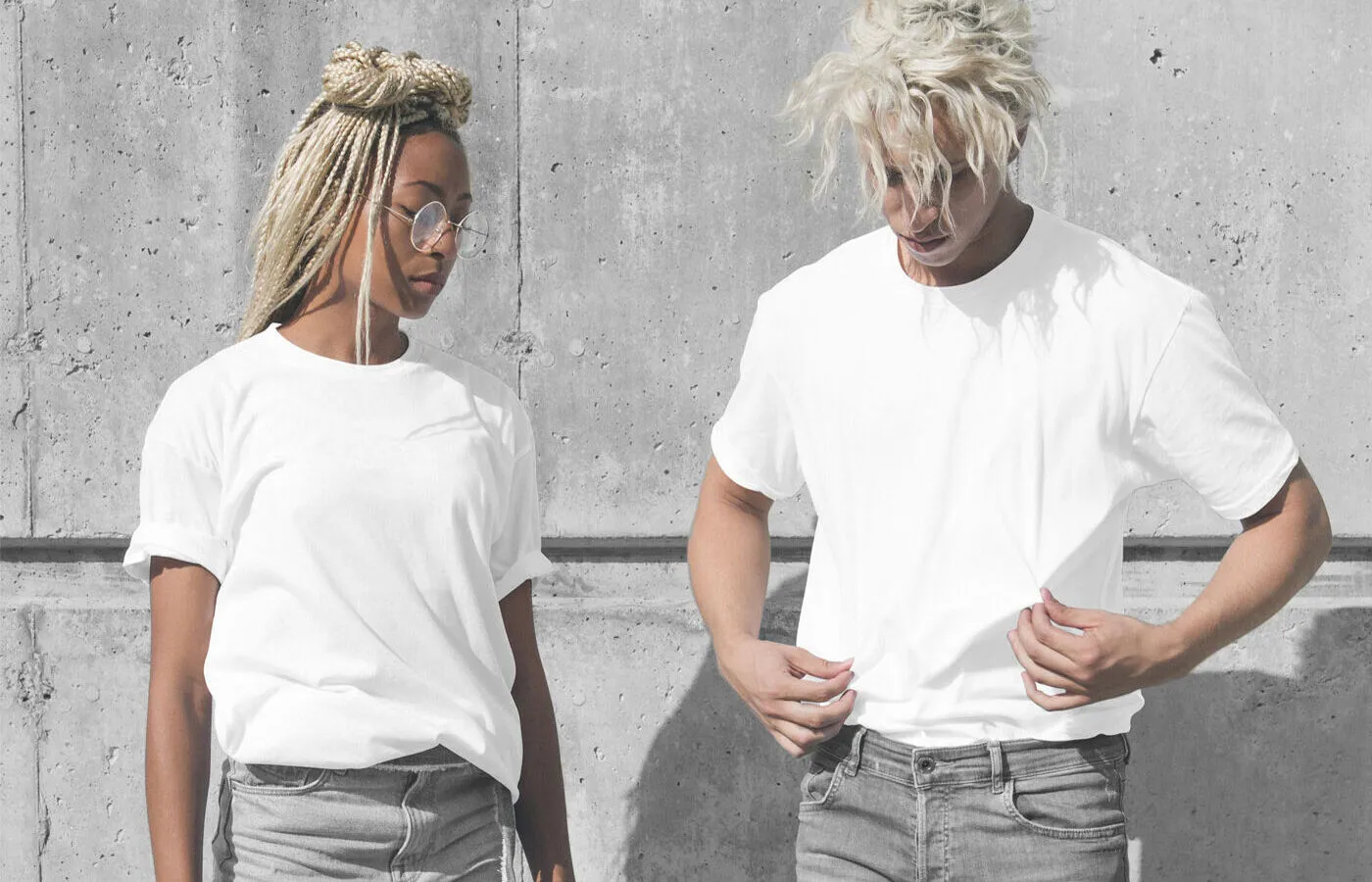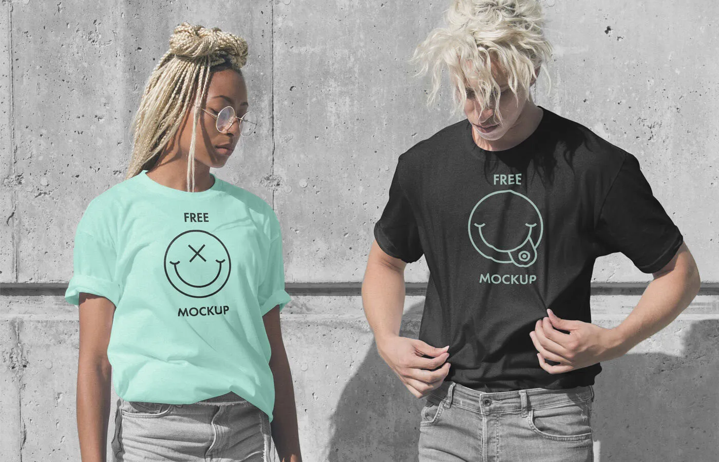 Photo Realistic T-Shirt Mockup Featuring a Man and a Woman