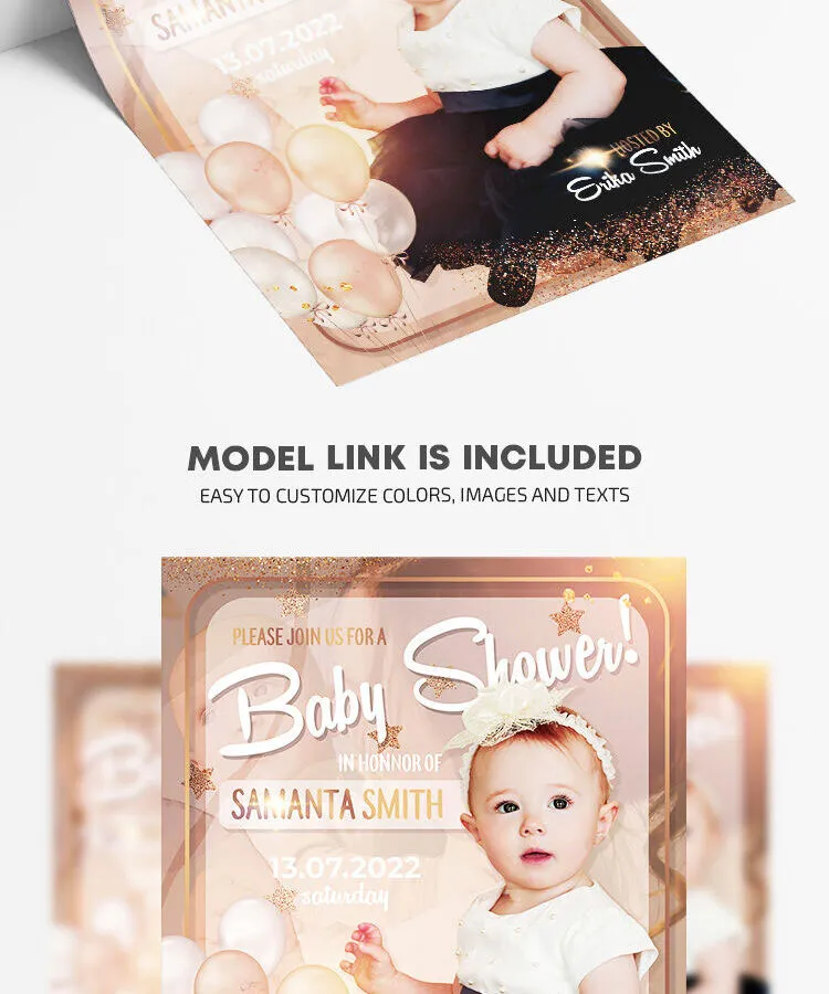 This Pink Balloons Baby Shower Invitation Flyer Template is perfect for celebrating the arrival of a new baby, whether it is your first child or not. This customizable template features a charming pink balloon design, allowing you to create a special invitation that suits your style and budget. You can easily adjust the colors and filters to match your party theme.