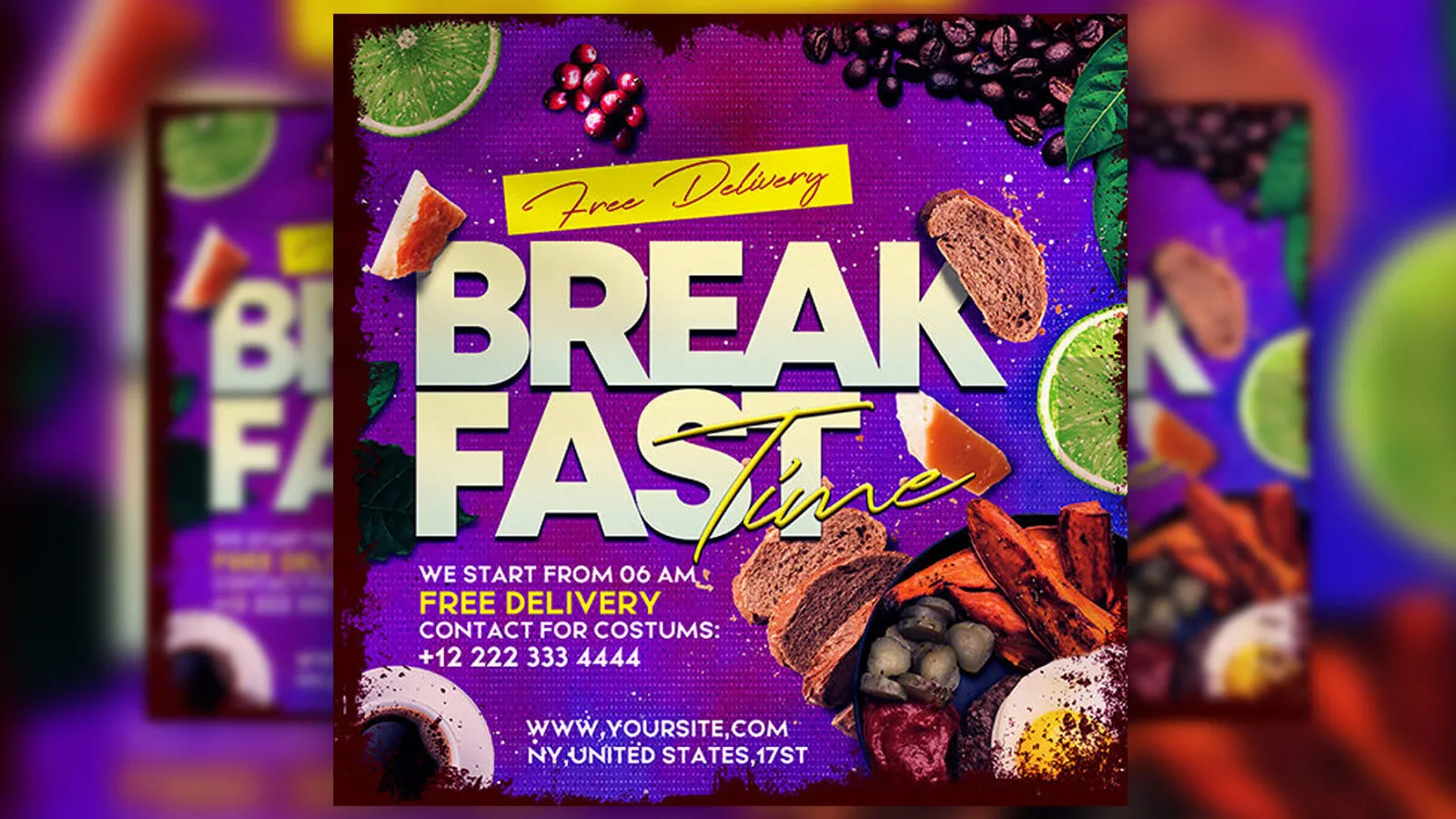 Purple Breakfast Time Flyer / Instagram Banner Template