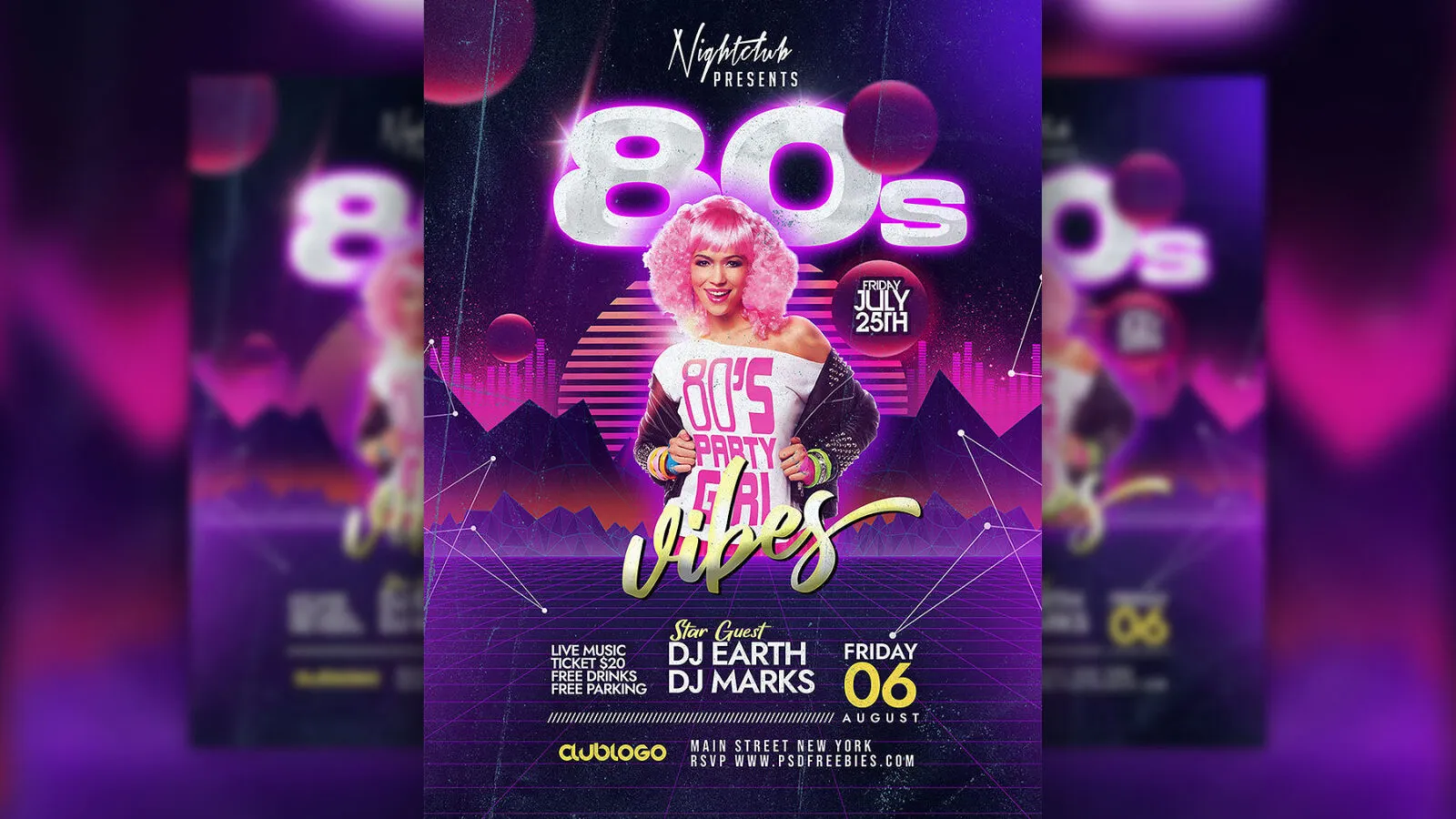 Purple Classic Retro Theme Party Flyer Template invites your guests to experience the nostalgic charm of the 80s. This eye-catching design serves as a perfect invitation for your special event, capturing the essence of a classic retro theme.