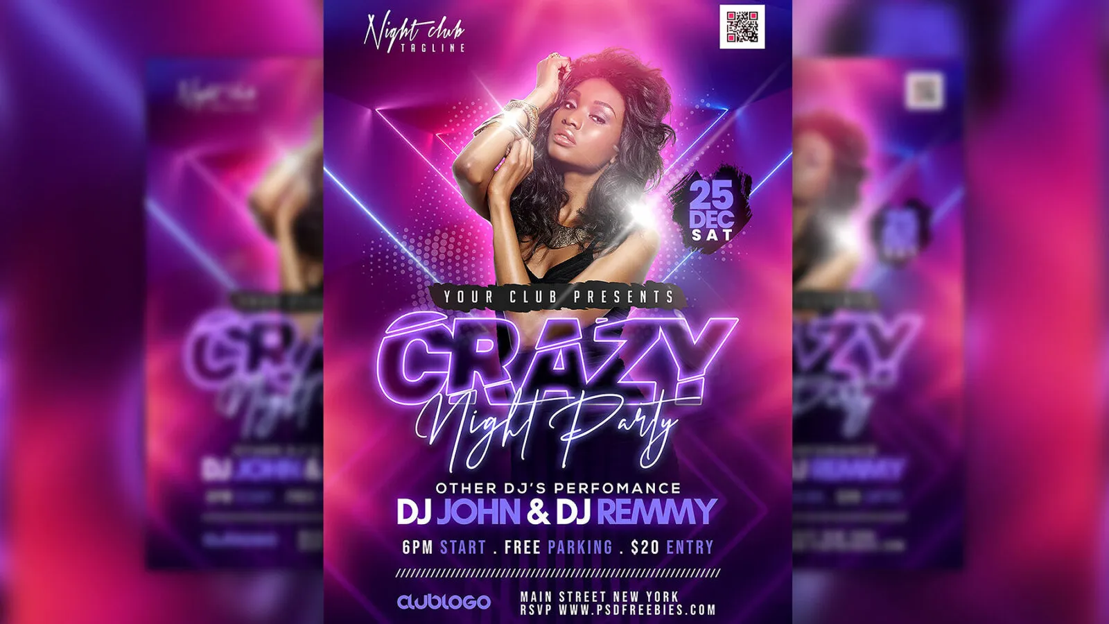 Purple Neon Crazy Nightclub Music Party Flyer Template