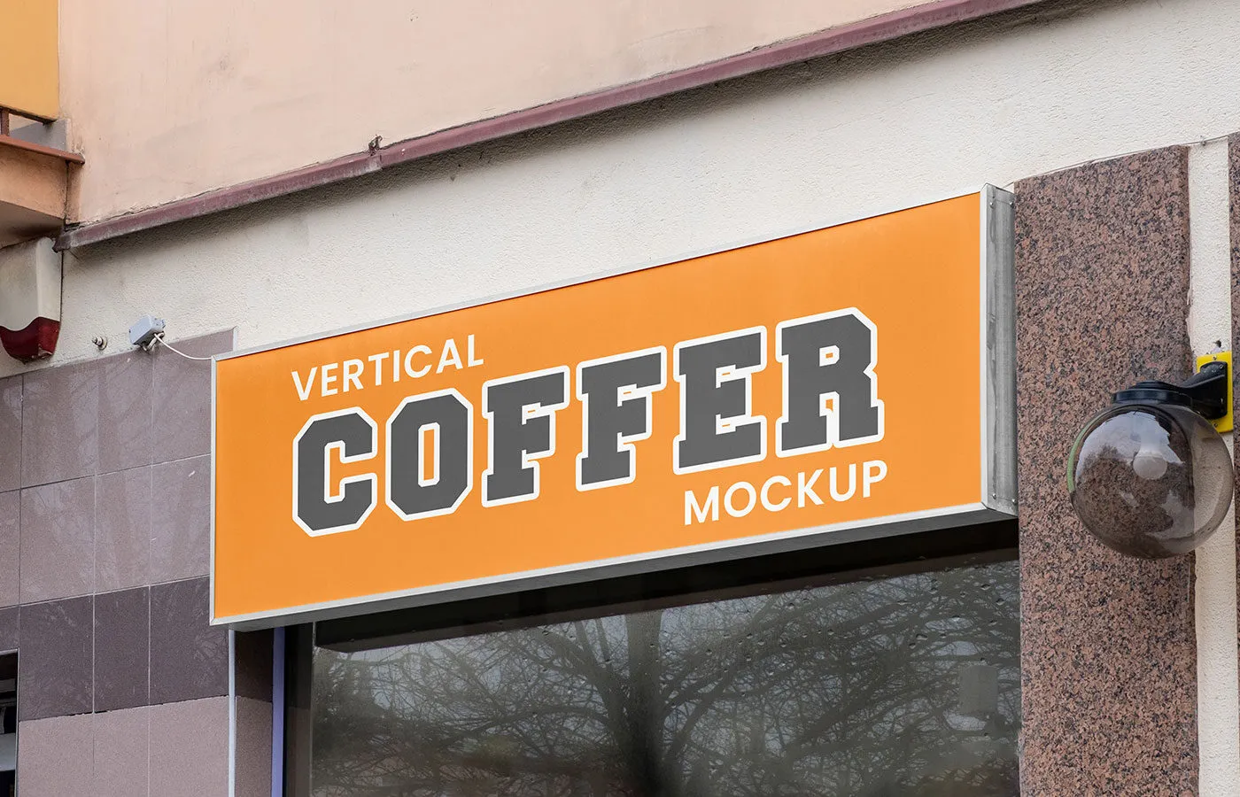 Rectangle Coffer Sign Mockup in Perspective Vision