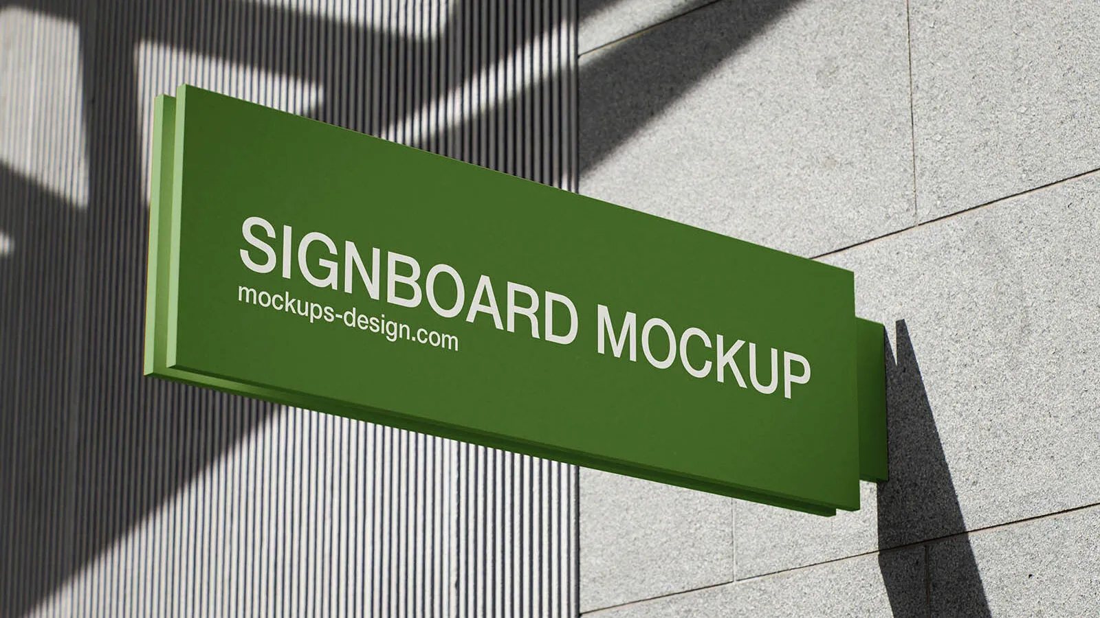 The Rectangular Signboard Mockup offers a realistic way to display your brand identity on a wall-mounted board. This high-resolution PSD mockup includes two editable files, featuring a horizontal sign in a genuine urban setting. The design incorporates realistic lighting, deep shadows, and depth to make your logo or signage stand out.