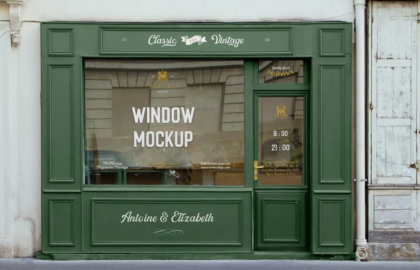 Showcase your shop with the Retail Storefront Mockup in Facing Showcase, designed to give your branding a realistic and memorable appearance. This mockup offers a classic and urban vibe, making it an ideal choice for highlighting your store’s unique design.