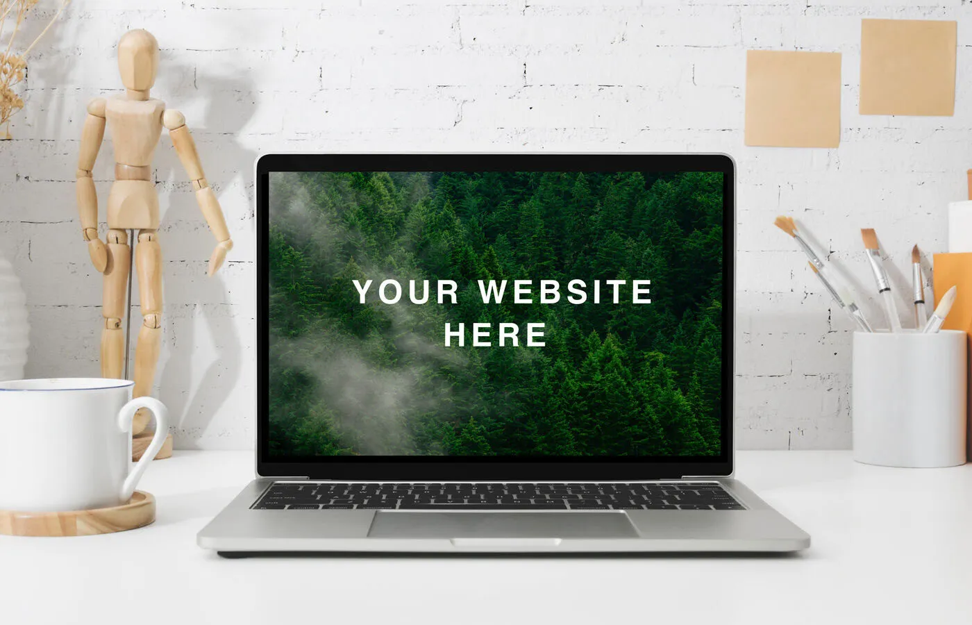 For a realistic project presentation, consider using the Retina MacBook Workspace Mockup with Real Life Objects. This mockup features a front view of an open MacBook surrounded by everyday items, providing a true-to-life setting for your design. It offers a realistic preview of how your final design will appear.