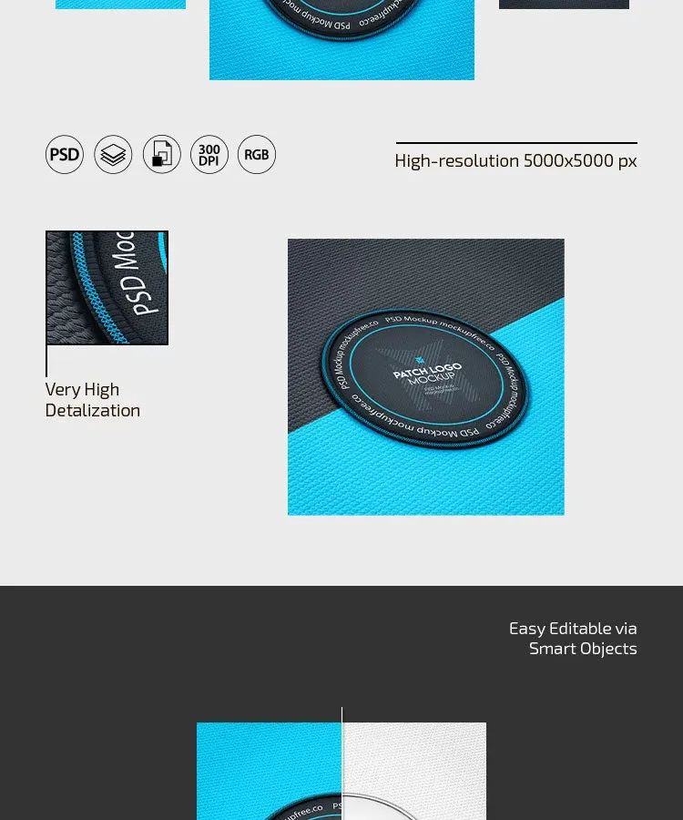 With smart object layers, you can effortlessly insert your artwork, modify surrounding text, change the patch color, adjust scale and shadows, or switch fabrics and patterns. This allows you to create a professional and lifelike presentation that can impress clients or enhance your portfolio. This free resource is ready to help bring your creative vision to life.