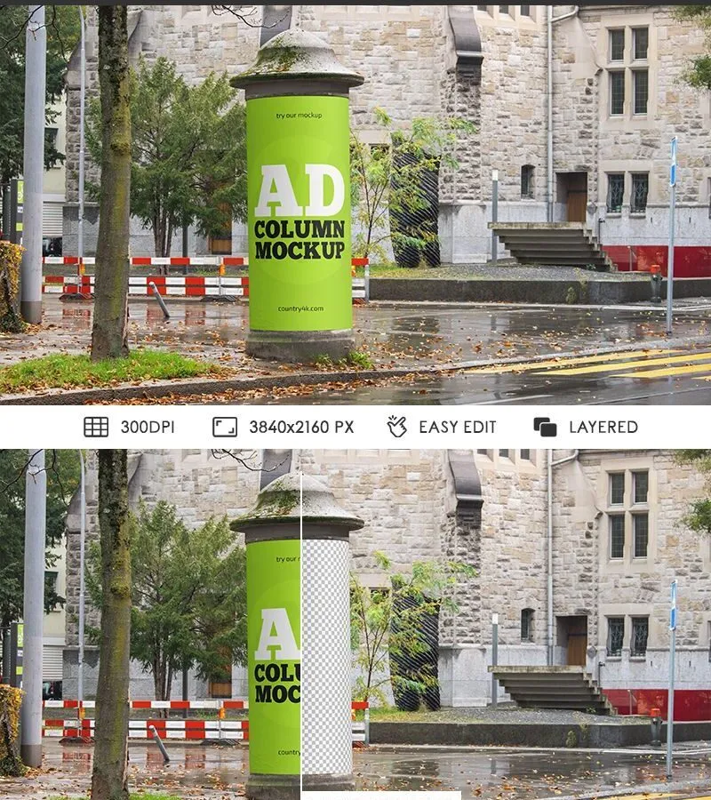 Do you need something special? So you better rush to try this amazing mockup right now. It’s coming with a round column that you can use for many different purposes. All it takes is a few simple clicks and then everything will be set and done.