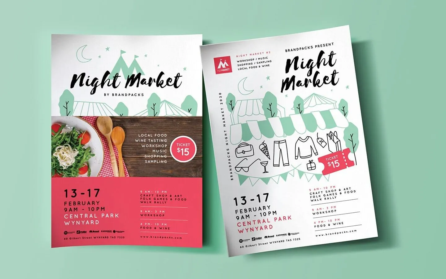 Night, local, community, farmers markets, and food, drink, etc.; festivals are to give off cordial, warm vibes to get the folks to feel welcomed and encouraged to attend. That’s the specialty of this rustic illustrated by hand.