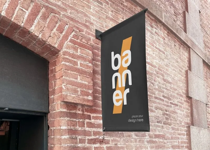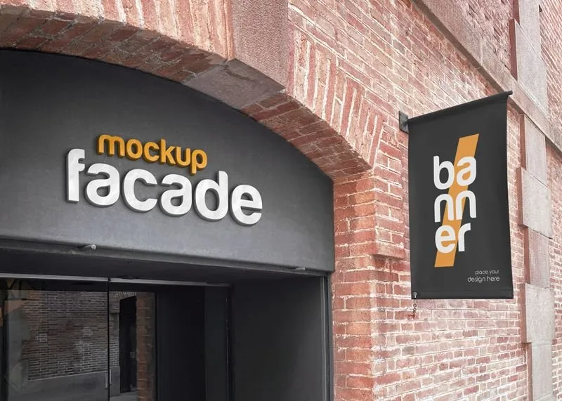 Shop Facade Mockup with Banner in Perspective View