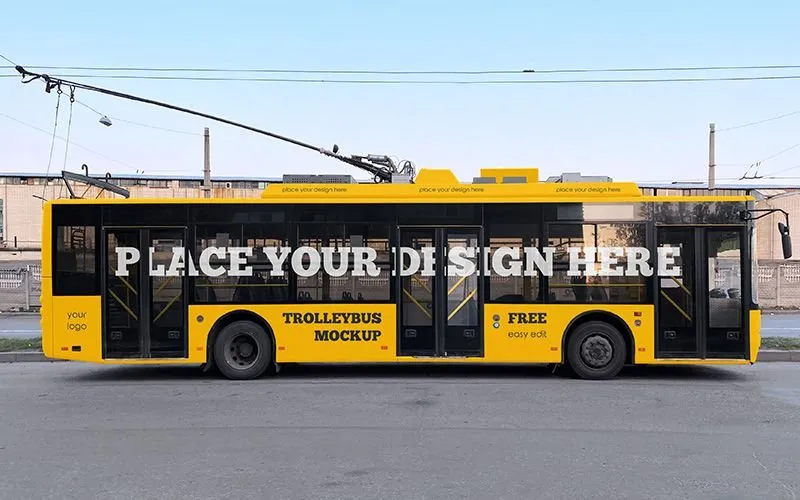 Are you interested in unique realistic designs and need this style for your next promotion? We have an apt offer for you that can be a perfect selection. This trolleybus mockup with its lifelike and salient mood can showcase your name well.