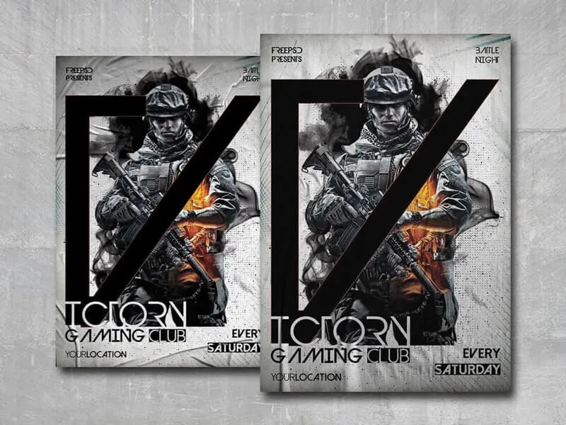 This template includes a designated area for essential text, allowing you to provide key details about your event clearly and concisely. It is an ideal choice for promoting gaming events, tournaments, and contests in a professional manner.