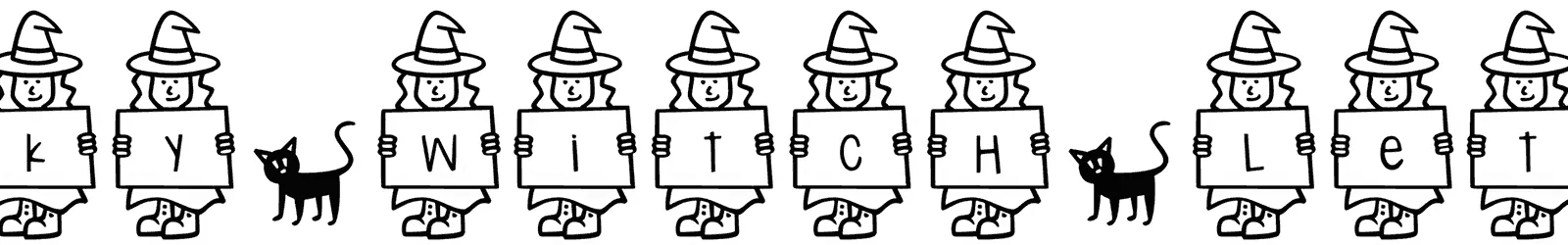 The Spooky Witch Letters font is a playful Halloween font. Use the underscore (_) for a witch holding a blank sign. Use the asterisk(*) for a black cat character.