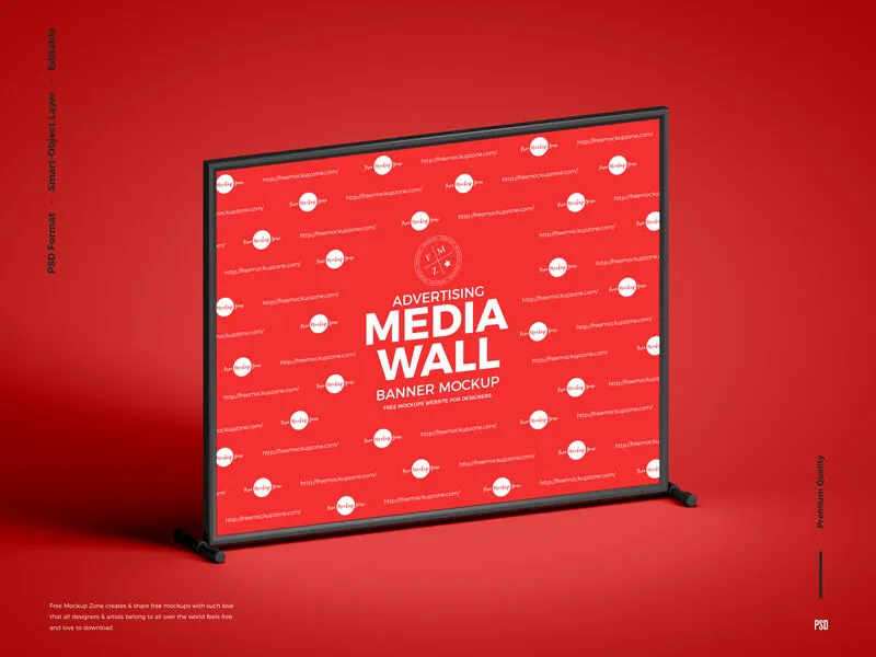 The Square Advertising Framed Media Wall Banner Mockup offers a unique way for designers to showcase their artwork. This mockup features a large square banner with a stylish frame, supported by two small stands. It includes a customizable background option, allowing you to easily match it with any color or design for the front view of your banner.